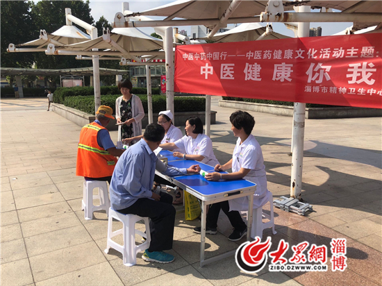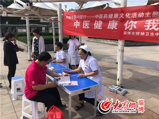 大眾網淄博7月2日訊(記者 孫奉娟 通訊員 王帥) 為進一步弘揚中醫藥文化,傳播中醫藥知識,提高人民群眾中醫養生保健素養。淄博市精神衛生中心在淄川正承廣場舉辦了以“中醫健康你我他”為主題的中醫中藥中國行義診活動。