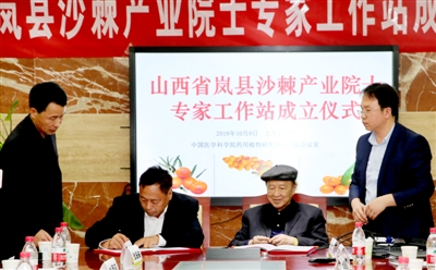 10月8日,山西省嵐縣與中國醫學科學院藥用植物研究所肖培根院士團隊共建的“嵐縣沙棘產業院士專家工作站”成立儀式在北京舉行。嵐縣縣委副書記、縣長喬云向以肖培根院士為首的工作站專家頒發了聘書。喬云在成立儀式上說,要繼續堅守“綠水青山就是金山銀山”的理念,以科技為支撐,培育好“小沙棘”,做強“大產業”。
