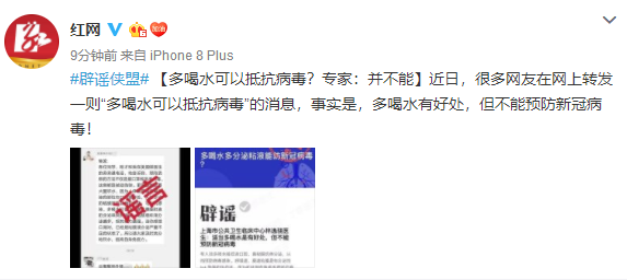 近日,很多網友在網上轉發一則“多喝水可以抵抗病毒”的消息,事實是,多喝水有好處,但不能預防新冠病毒! ????