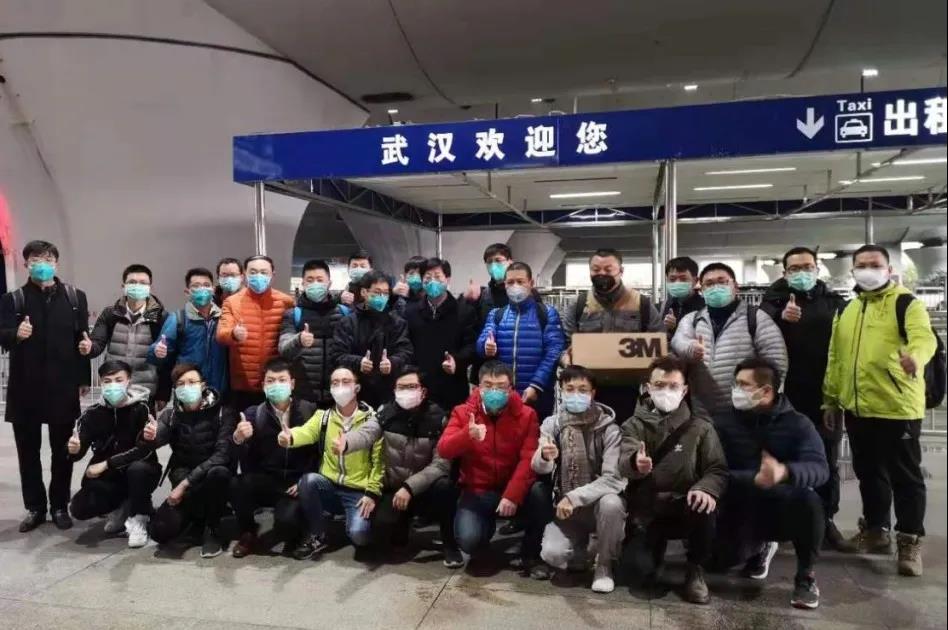 1月27日(大年初三),首批護理男團到達武漢高鐵站