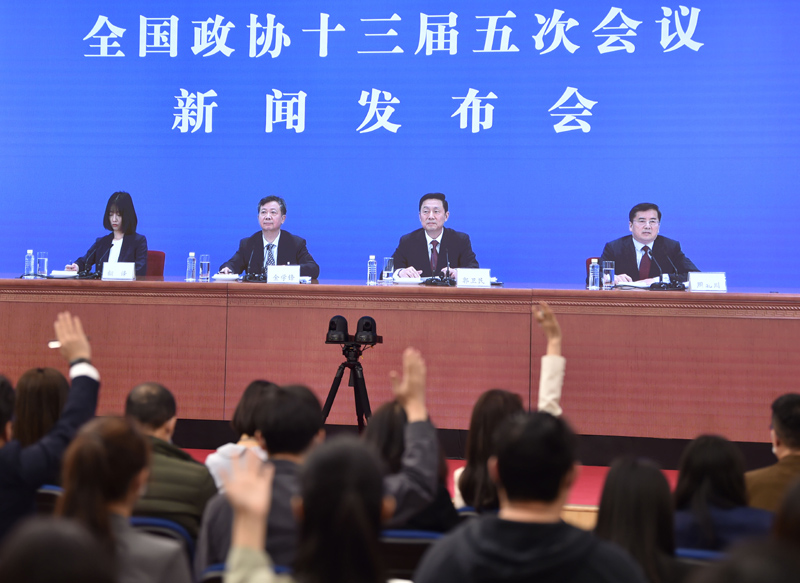 3月3日,全國政協十三屆五次會議新聞發布會在北京人民大會堂舉行。為有效防控疫情,本次新聞發布會沿用前兩年做法,采用網絡視頻的形式舉行,主會場設在人民大會堂,分會場設在梅地亞中心。