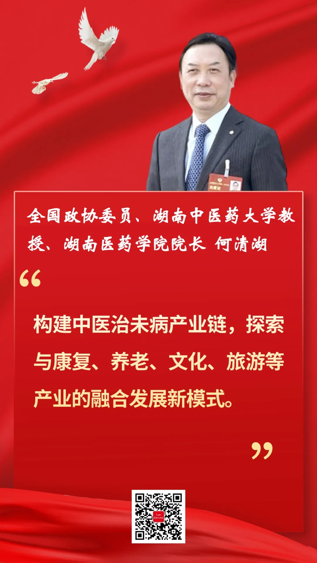 “疾病預(yù)防是最經(jīng)濟(jì)、最有效的健康策略。”全國政協(xié)委員、湖南中醫(yī)藥大學(xué)教授、湖南醫(yī)藥學(xué)院院長何清湖表示,當(dāng)前,我國衛(wèi)生與健康工作方針秉持大衛(wèi)生、大健康的理念,工作重心從“以治療為中心”向“以預(yù)防為中心”轉(zhuǎn)變,中醫(yī)藥的治未病特色在這一過程中具有主導(dǎo)性優(yōu)勢。