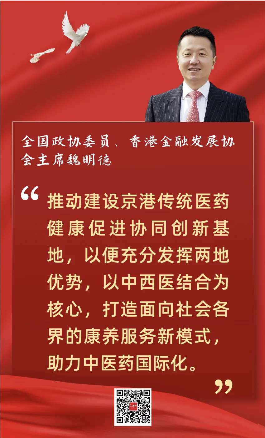 中醫藥作為傳統醫藥的杰出代表,是中華文明的瑰寶。香港作為國際金融、貿易和科研中心,擁有國際化資源整合能力與標準化推廣經驗。兩會期間,全國政協委員、香港金融發展協會主席魏明德建議推動建設京港傳統醫藥健康促進協同創新基地,以便充分發揮兩地優勢,以中西醫結合為核心,打造面向社會各界的康養服務新模式,助力中醫藥國際化。