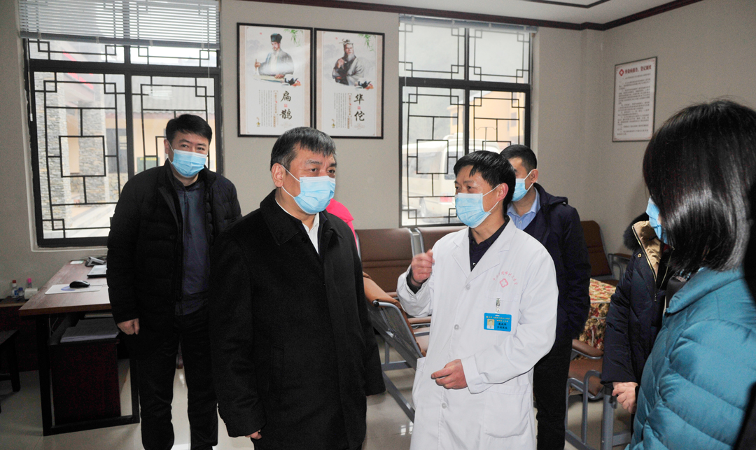閆樹(shù)江(左二)調(diào)研中益鄉(xiāng)建峰村衛(wèi)生室。