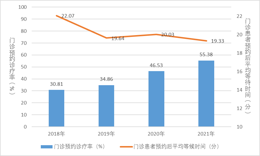 圖3 2018-2021年三級公立中醫醫院預約診療開展情況