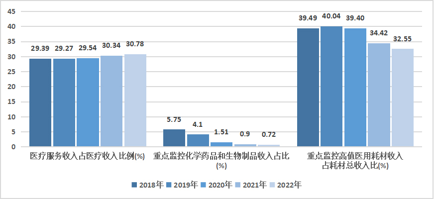 圖8 2018-2022年三級(jí)公立中醫(yī)醫(yī)院收入結(jié)構(gòu)情況