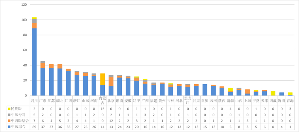 經(jīng)各省級(jí)中醫(yī)藥主管部門審核確認(rèn),全國(guó)共705家三級(jí)公立中醫(yī)醫(yī)院參加2022年度績(jī)效考核。其中,中醫(yī)醫(yī)院571家,中西醫(yī)結(jié)合醫(yī)院76家,中醫(yī)專科醫(yī)院24家,少數(shù)民族醫(yī)醫(yī)院34家(見(jiàn)圖1)。與2021年相比,新增考核醫(yī)院48家,因合并、降級(jí)、撤銷等原因退出考核的醫(yī)院共4家。