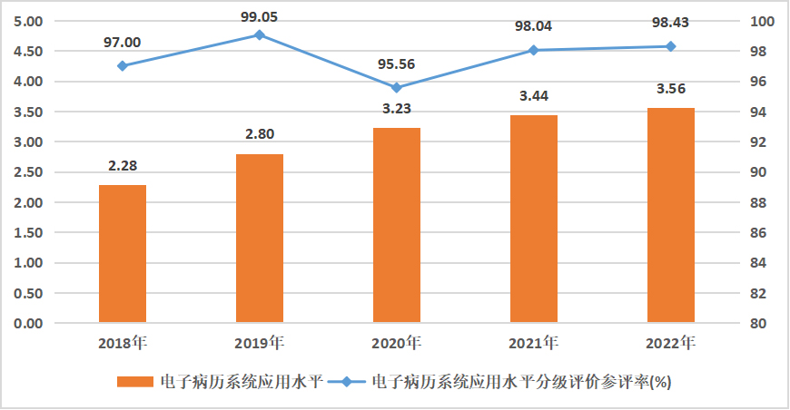圖7 2018-2022年三級(jí)公立中醫(yī)醫(yī)院電子病歷系統(tǒng)應(yīng)用水平分級(jí)評(píng)價(jià)情況