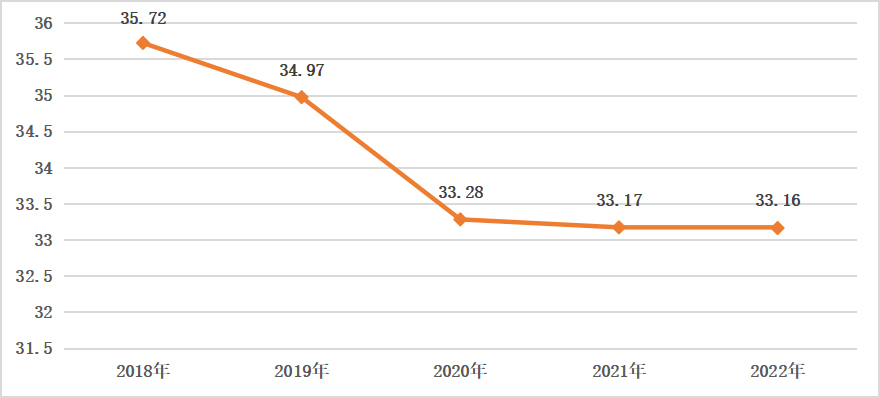 圖4 2018-2022年三級(jí)公立中醫(yī)醫(yī)院抗菌藥物使用情況